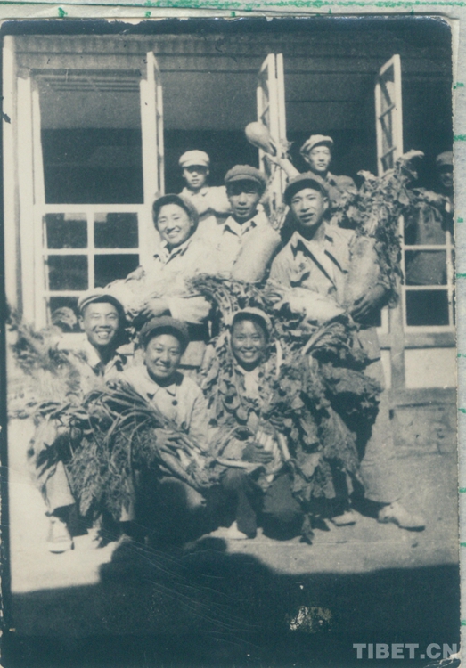 入城后,文工隊(duì)分別住在江孜城郊強(qiáng)查洞幾處民房里。初到江孜,后方給養(yǎng)一時(shí)運(yùn)不上來(lái),蔬菜等主副食又得不到有效供給,西藏只有土豆、元根,他們還不能隨便采購(gòu)。西藏工委和十八軍黨委遵照毛主席“進(jìn)軍西藏,不吃地方”的指示,提出“搞好生產(chǎn)是進(jìn)藏部隊(duì)長(zhǎng)期的一項(xiàng)中心任務(wù)”,文工隊(duì)同分工委全體工作人員一道在帕拉開墾荒地、播種糧食。天寒地凍又缺少農(nóng)具,用鐵锨鏟鏟不動(dòng),用十字鎬挖,一鎬下去,直冒火星。同志們想方設(shè)法烤凍土,翻起一塊一塊像鐵板一樣的凍土,晾在太陽(yáng)下曬,然后再一鎬一鎬的砸碎、耙平,沒有耕牛,男同志就扛起繩拉犁,女同志平地耙地。江孜海拔4000米以上,平日里都缺氧,此時(shí)再加上勞累更是頭暈?zāi)X脹,上氣不接下氣,可是他們充分發(fā)揚(yáng)“不怕苦不怕累”的精神,終于開出一片荒地、撒下種子、收獲了自己種下的糧食,做到了一部分自給,在西藏群眾中產(chǎn)生了很好的影響。文工隊(duì)還在住地附近開辟了一塊地種菜,用實(shí)際行動(dòng)徹底粉碎了西藏上層反動(dòng)集團(tuán)妄圖用糧食困住解放軍進(jìn)而餓走解放軍的美夢(mèng)。