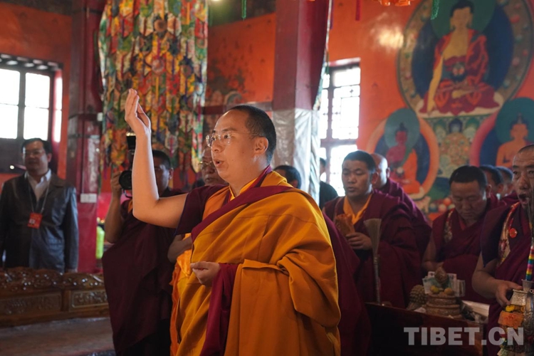 “殊勝時代,我們作為釋迦弟子都具有繼承和發(fā)揚(yáng)佛法的神圣使命。佛教進(jìn)入再弘期,不能像等新年那樣一直等著,而是要愛護(hù)佛法,為自己的寺廟擔(dān)責(zé)?!痹诩{塘寺講經(jīng)后,班禪勉勵僧眾,“現(xiàn)已進(jìn)入佛法再弘期。作為農(nóng)民他們有自己的農(nóng)活要干,作為商人他們有自己的商業(yè)活動要忙,而我們作為佛弟子,要做好弘揚(yáng)佛法、利樂眾生,做符合新時代要求的講經(jīng)闡釋等工作。要做一名名副其實(shí)的合格僧人,嚴(yán)守戒律,精進(jìn)研修,從自身獨(dú)特角度,輔助支持黨和政府做好為人民服務(wù)的工作,在推動社會發(fā)展進(jìn)步中發(fā)揮積極作用?!?/p>