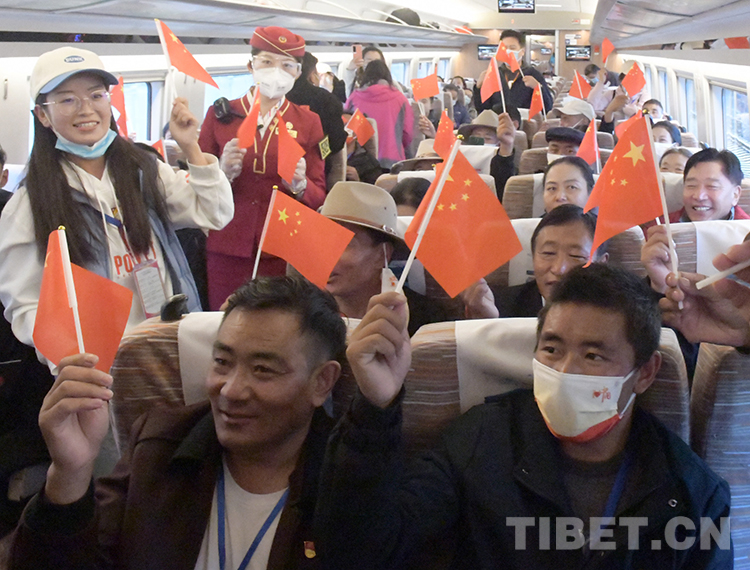 這是森布日那曲極高海拔生態(tài)搬遷安置點的赴京基層干部乘坐京張高鐵列車,感受祖國的偉大變化(唐召明2021年10月20日攝)