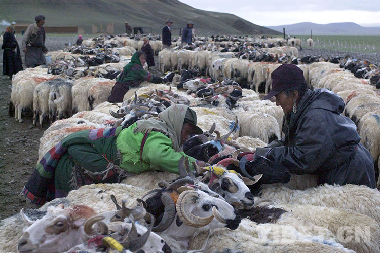 這是那曲地區(qū)雙湖特別區(qū)(現(xiàn)為那曲市雙湖縣)嘎措鄉(xiāng)的牧民群眾在擠羊奶(唐召明2001年攝)