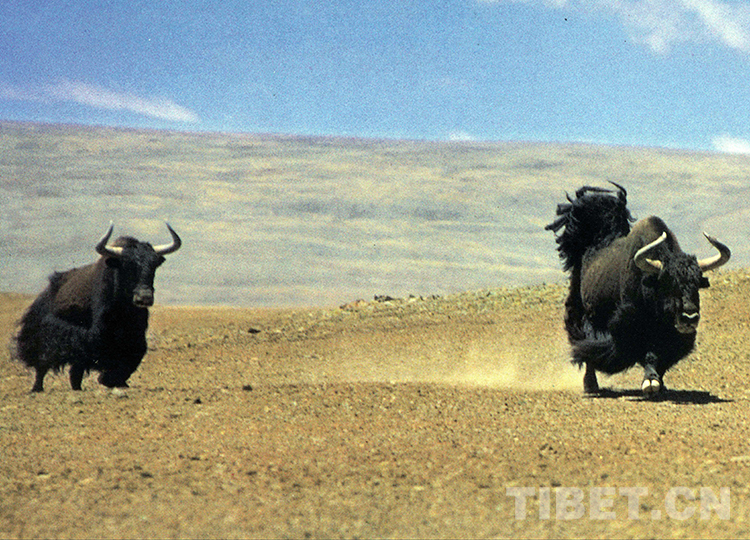 性情強悍的野牦牛傳宗接代的方式也是驚心動魄的。每年的七八月份是野牦牛的發(fā)情交配季節(jié)。雄性野牦牛相遇,必然展開一場激烈的角斗,勝利者獲得對雌性野牦牛的占有權,戰(zhàn)敗者只能灰溜溜地落荒而逃。