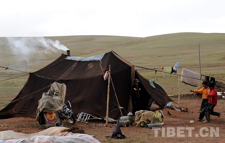 這是那曲地區(qū)雙湖特別區(qū)(現(xiàn)那曲市雙湖縣)嘎措鄉(xiāng)兒童在夏季草場(chǎng)的牦牛帳篷前玩耍(唐召明2009年攝)