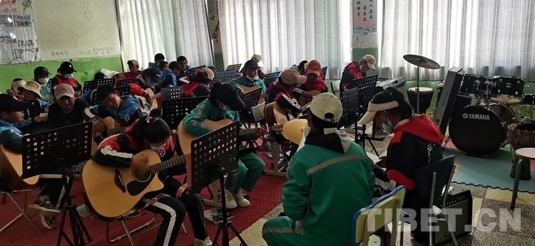 圖為薩迦縣中學(xué)民樂(lè)社在上課