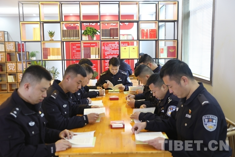 圖為林芝邊境管理支隊(duì)機(jī)關(guān)民警閱讀紅色書籍 攝影:柳春偉