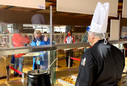圖為巴赫為冬奧村餐飲服務點贊 圖片來源:中新網(wǎng)