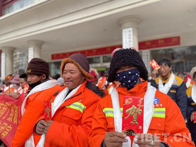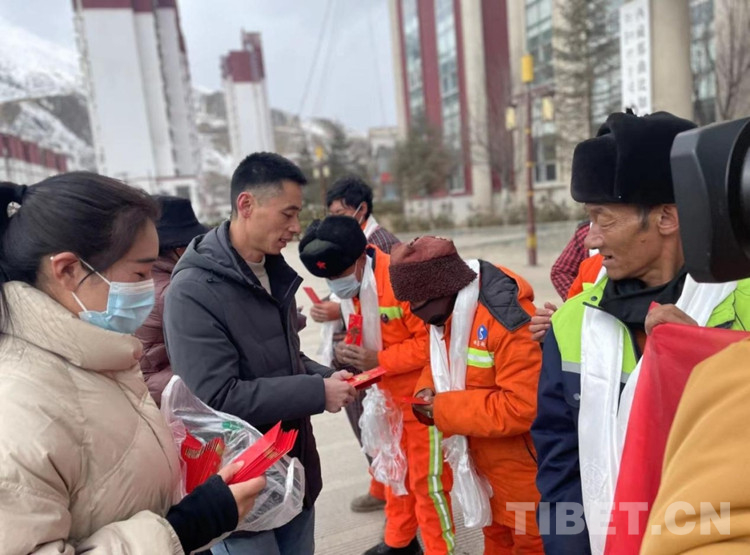 中國(guó)西藏網(wǎng)訊 2月28日,在藏歷新年到來之際,西藏自治區(qū)那曲市比如縣政府大樓前正在開展一場(chǎng)溫暖人心的慰問活動(dòng)?!靶履旰?,給大家拜年了,衷心祝愿大家在新的一年里身體健康、工作順利?!?慰問現(xiàn)場(chǎng),川英集團(tuán)負(fù)責(zé)人向每位環(huán)衛(wèi)工人和城管協(xié)管員獻(xiàn)上潔白的哈達(dá)致以新年的美好祝福,感謝他們?yōu)楸热绛h(huán)衛(wèi)事業(yè)作出的貢獻(xiàn),并送上1000元慰問金。(中國(guó)西藏網(wǎng) 記者/賈華加 比如縣宣傳部供圖)