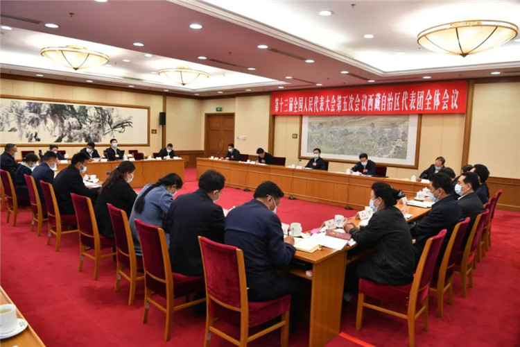 圖為3月5日,十三屆全國人大五次會(huì)議西藏自治區(qū)代表團(tuán)在駐地舉行全體會(huì)議,審議李克強(qiáng)總理所作的政府工作報(bào)告。旦增西旦 攝