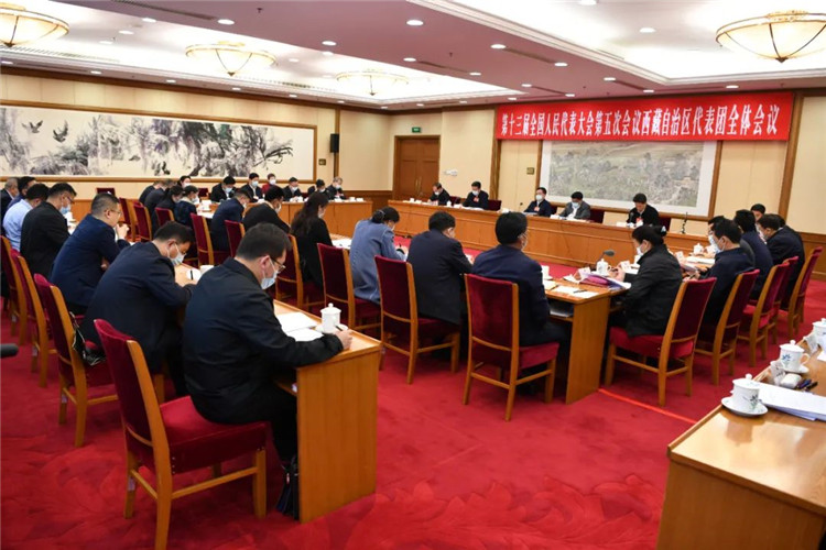 圖為3月8日下午,西藏自治區(qū)代表團(tuán)在駐地舉行全體會(huì)議,審議全國人大常委會(huì)工作報(bào)告。旦增西旦 攝