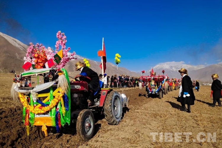 據(jù)悉,儀式當(dāng)日上午,村民們會(huì)身著節(jié)日盛裝,歡聚在田間地頭、載歌載舞隆重舉行春耕春播儀式?;顒?dòng)現(xiàn)場(chǎng),姑娘們舉起手中的切瑪、青稞酒、人參果為犁手們唱歌敬酒,在祝福的歌聲中,開(kāi)啟春耕“第一犁”。在西藏,過(guò)去是牦牛耕地,如今,隨著農(nóng)業(yè)科學(xué)化發(fā)展,現(xiàn)在農(nóng)耕都用現(xiàn)代化的拖拉機(jī)“鐵?!备?。一般吉時(shí)一到,一個(gè)個(gè)犁手頭頂金黃圓筒帽,身穿氆氌藏裝駕著一輛輛插著五星紅旗,系著潔白哈達(dá)的“鐵?!本従忨傔M(jìn)田間,一片片沃土隨著鐵犁慢慢翻開(kāi),婦女們?cè)诤竺娌ト銮囡挤N……在田埂上形成一道最靚麗的風(fēng)景線,好不壯觀!
