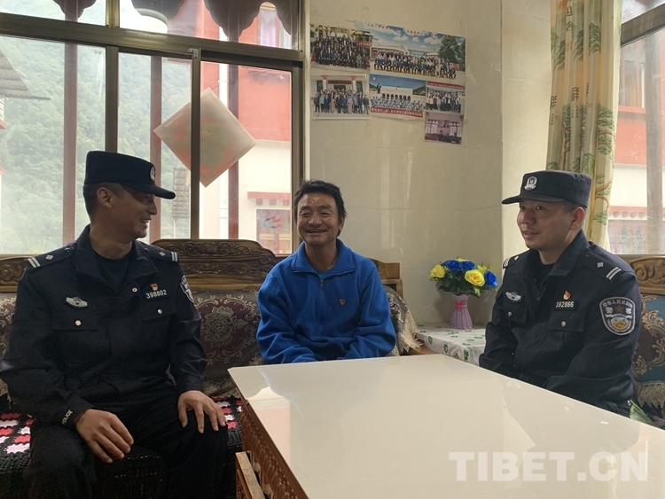 圖為西藏林芝背崩邊境派出所民警正在與轄區(qū)老黨員新生談論如今生活的變化 攝影:呂恒剛
