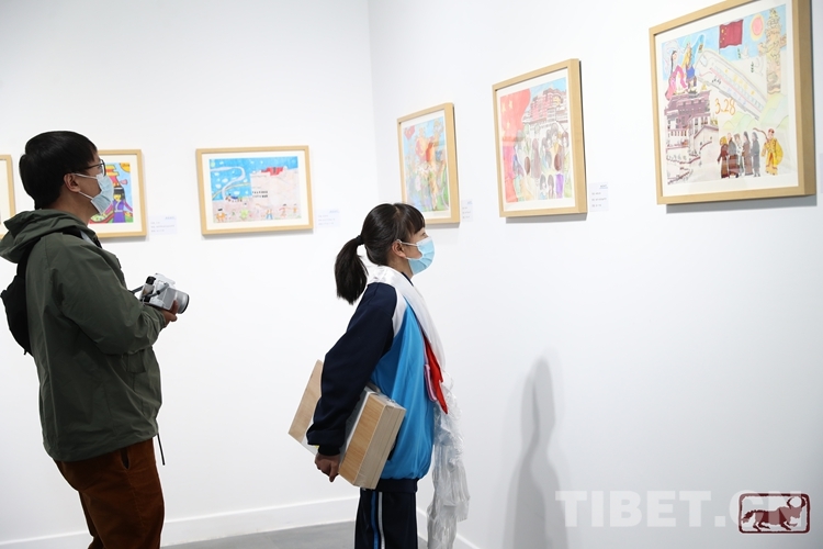 圖為畫美時代——“紀念西藏百萬農(nóng)奴解放63周年”拉薩市青少年優(yōu)秀繪畫作品展現(xiàn)場