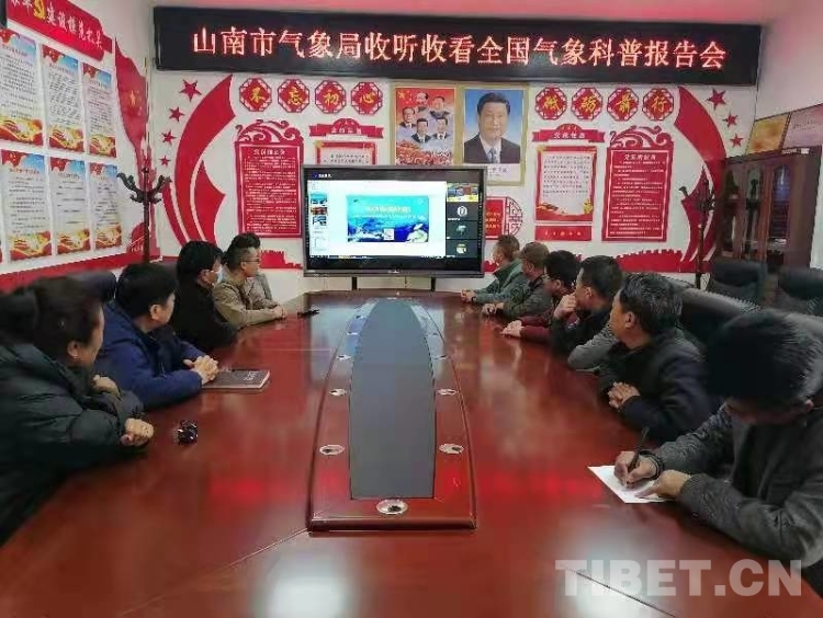 圖為山南市氣象局收聽(tīng)收看報(bào)告