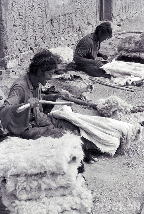 這是從西藏南木林縣來(lái)嘎措鄉(xiāng)揉皮子“打工”的藏族農(nóng)民工(唐召明1988年攝)