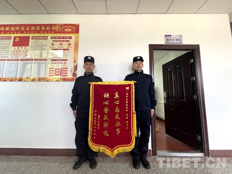 中國(guó)西藏網(wǎng)訊 “真心為民辦事,傾心替民解憂!”近日,西藏自治區(qū)林芝邊境管理支隊(duì)南伊邊境派出所收到一面來自廣東的錦旗,向派出所移民管理警察沈朋、吳川江的幫助表示感謝。