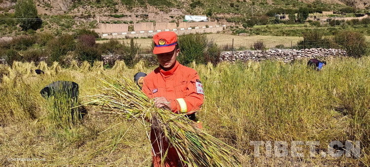 圖為楊繼新正在幫群眾收青稞