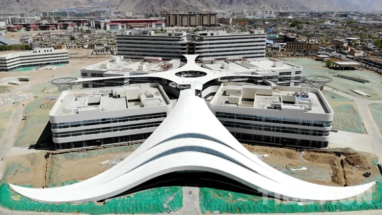中國西藏網(wǎng)訊 挖掘機(jī)的轟鳴聲、鋼管的碰撞聲,走進(jìn)西藏自治區(qū)醫(yī)院項(xiàng)目施工現(xiàn)場(chǎng),一派忙碌的景象。從空中俯瞰,建設(shè)中的西藏自治區(qū)醫(yī)院外形宛如一朵格?;?,目前正進(jìn)行室內(nèi)裝修和機(jī)電安裝。