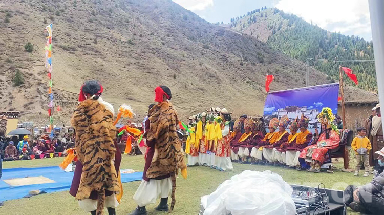 此次《諾桑王子》的表演劇本,由演員們自發(fā)組織創(chuàng)作,保留了古老的唱腔藝術(shù)和服飾藝術(shù),在原創(chuàng)基礎上,添加了折嘎、昌都鍋莊、康巴特色體育競技等內(nèi)容。在保護與創(chuàng)新中傳承,造就了這座村落獨特的藏戲文化。