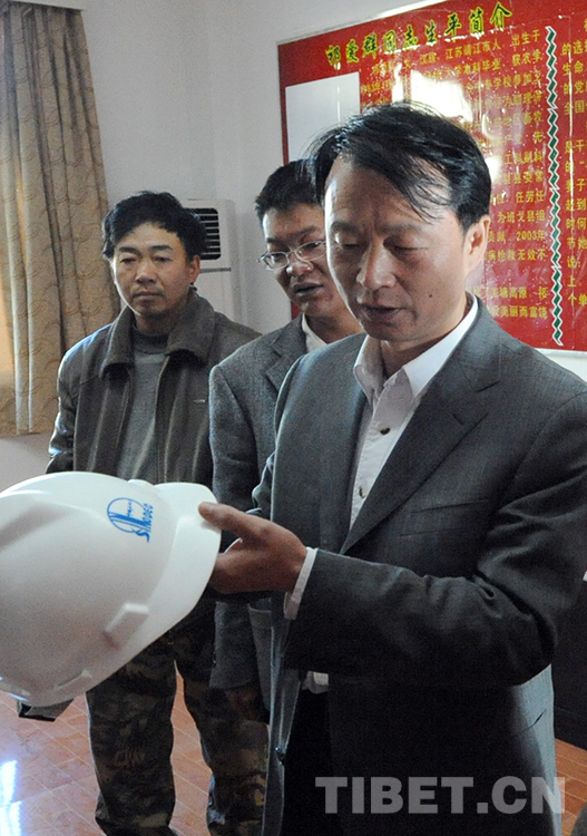 這是中國(guó)石化首批援藏干部李一超,在回憶他向祁?lèi)?ài)群贈(zèng)送這頂?shù)V工帽的經(jīng)過(guò)(唐召明2009年8月12日攝)