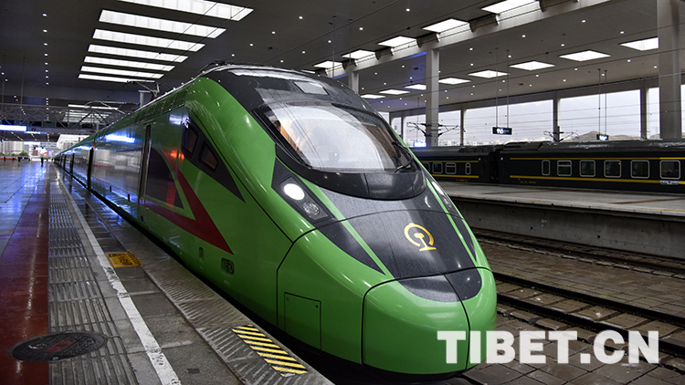 圖為6月25日,一列復(fù)興號(hào)列車停靠在拉薩站 攝影:王媛媛