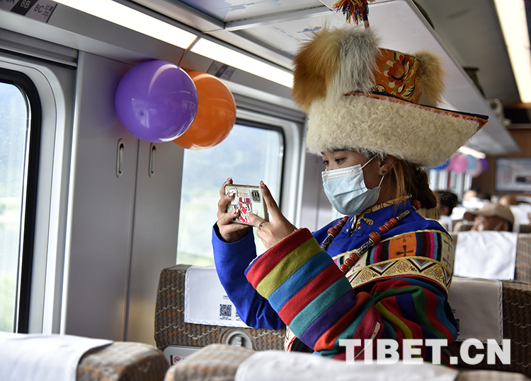 與斯朗旺扎的特別安排不同,游客胡菊萍和章猛飛是恰巧趕上了。一行人于6月23日抵達(dá)拉薩,在游覽了山南市的昌珠寺、雍布拉康等景點(diǎn)后,準(zhǔn)備從山南搭乘火車前往林芝繼續(xù)游玩。胡菊萍告訴記者,2007年,她也曾搭乘火車從西寧到拉薩旅游?!澳菚r(shí)候,翻唐古拉山,身體特別不舒服。今天乘坐復(fù)興號(hào),感覺(jué)特別好。過(guò)隧道時(shí),一點(diǎn)都沒(méi)有耳鳴的反應(yīng),手機(jī)也有信號(hào)?!焙掌即蛩愣嗯囊稽c(diǎn)車窗外的景色,留存回憶的同時(shí)也要分享給家里人。