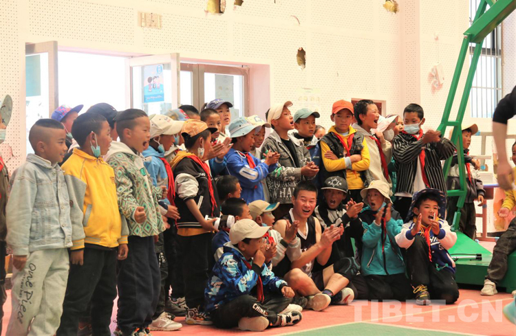 這次比賽在崗巴縣的一所學(xué)校的籃球館里舉行,比賽還沒(méi)有開(kāi)始,孩子們就把館內(nèi)圍得“水泄不通”,大喊著:“劉科加油,劉科加油!”民警黃列平不情愿地和孩子們說(shuō):“怎么只對(duì)劉科喊加油啊,我們也要!”孩子們嘿嘿笑了兩聲,等到劉科休息換人的時(shí)候,呼喊聲改成了:“劉科隊(duì)加油!”