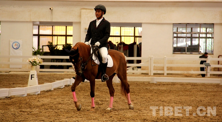 圖為在拉薩分賽場西藏自治區(qū)第十三屆運(yùn)動(dòng)會(huì)舉行的馬術(shù)項(xiàng)目盛裝舞步比賽 攝影:德吉卓嘎