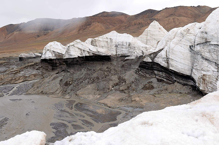 過河后我們停車,徒步在向?qū)У膸ьI(lǐng)下走向冰川。這就是被確認(rèn)為除南極、北極以外的世界第三大冰川啊!