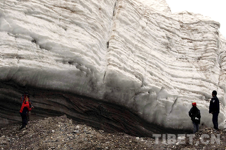 在一面幾十米高的冰墻下,我伸手去摸,感覺冰涼冰涼的、硬硬的,這就是冰川,是冰而不是雪。