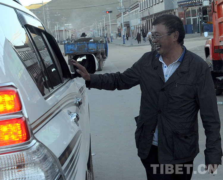 這是時(shí)任班戈縣副縣長(zhǎng)李正斌在縣城街頭與乘車熟人打招呼(唐召明2012年8月2日攝)