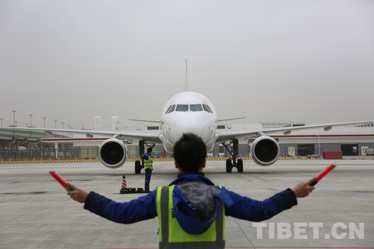 圖為一架航班抵達拉薩貢嘎機場 攝影:王佳豪
