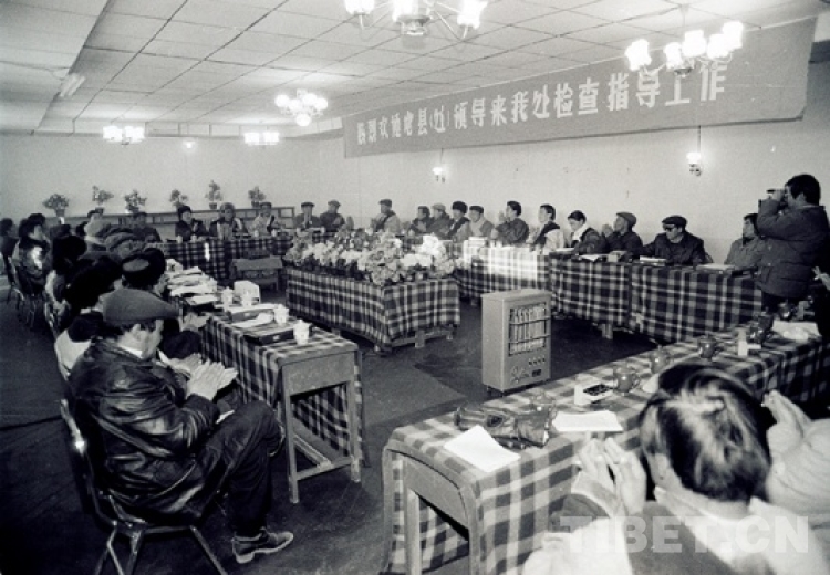 這是西藏那曲地區(qū)基層政權(quán)建設(shè)工作現(xiàn)場(chǎng)會(huì)在文部辦事處(現(xiàn)那曲市尼瑪縣)召開(kāi)(唐召明1989年12月攝)