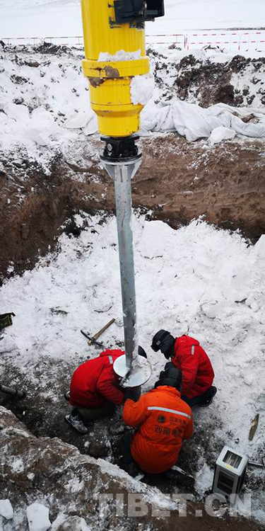 圖為在國(guó)網(wǎng)西藏電力阿里聯(lián)網(wǎng)工程螺旋錨施工現(xiàn)場(chǎng)