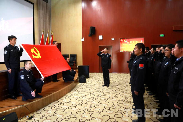 圖為西藏邊檢總站執(zhí)法調(diào)查支隊組織民警重溫入黨誓詞 攝影:劉明陽