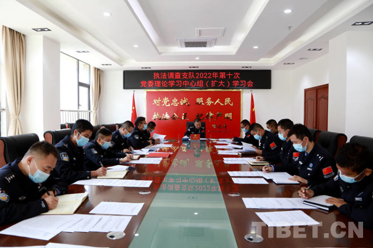 中國西藏網(wǎng)訊 近日,西藏邊檢總站執(zhí)法調(diào)查支隊掀起學習宣傳貫徹黨的二十大精神熱潮,西藏邊檢總站執(zhí)法調(diào)查支隊黨委號召支隊各級各部門和全體黨員民警立足自身職能職責和工作崗位,把學習好、宣傳好、貫徹好黨的二十大精神作為當前和今后一個時期的首要政治任務,全力保障支隊各項工作部署落地生根、開花結(jié)果,以實際行動學習宣傳貫徹好黨的二十大精神。(中國西藏網(wǎng) 記者/賈華加)圖為西藏邊檢總站執(zhí)法調(diào)查支隊召開學習宣傳貫徹黨的二十大精神動員部署會 攝影:劉明陽