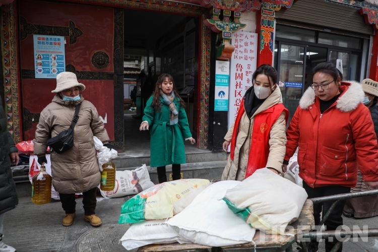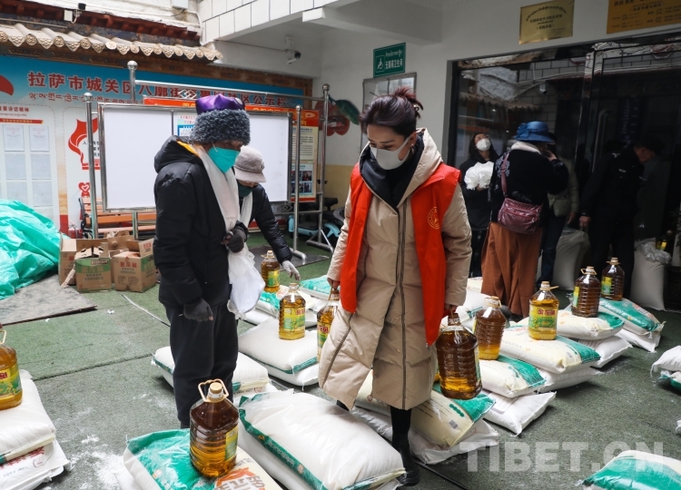 中國(guó)西藏網(wǎng)訊 近日,在西藏自治區(qū)拉薩市城關(guān)區(qū)八廓街道魯固社區(qū)居委會(huì)的院子里,不時(shí)傳來(lái)陣陣歡聲笑語(yǔ),在院子的正中間,一袋袋大米、面粉,一桶桶食用油碼放整齊。