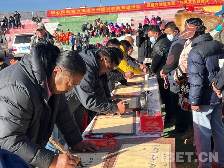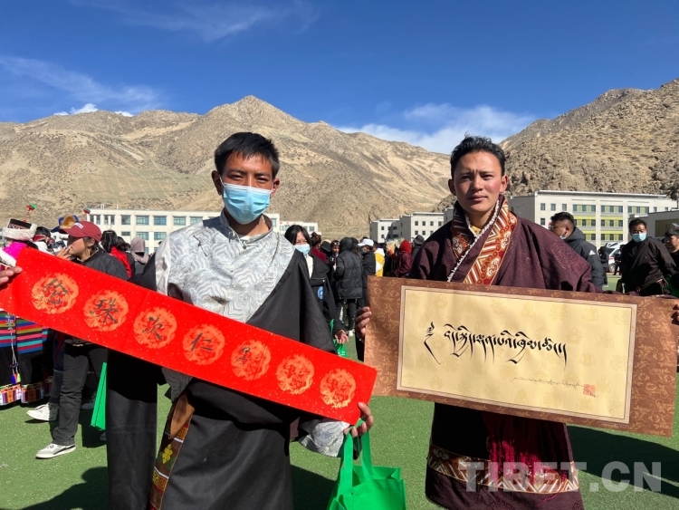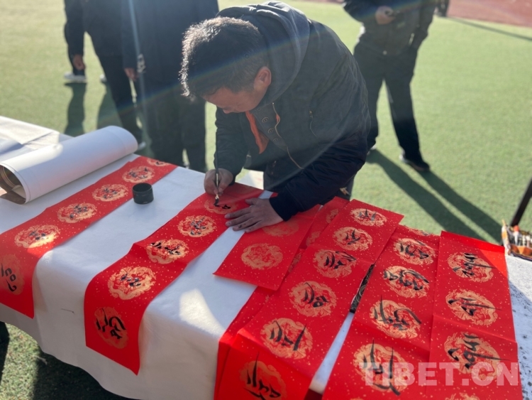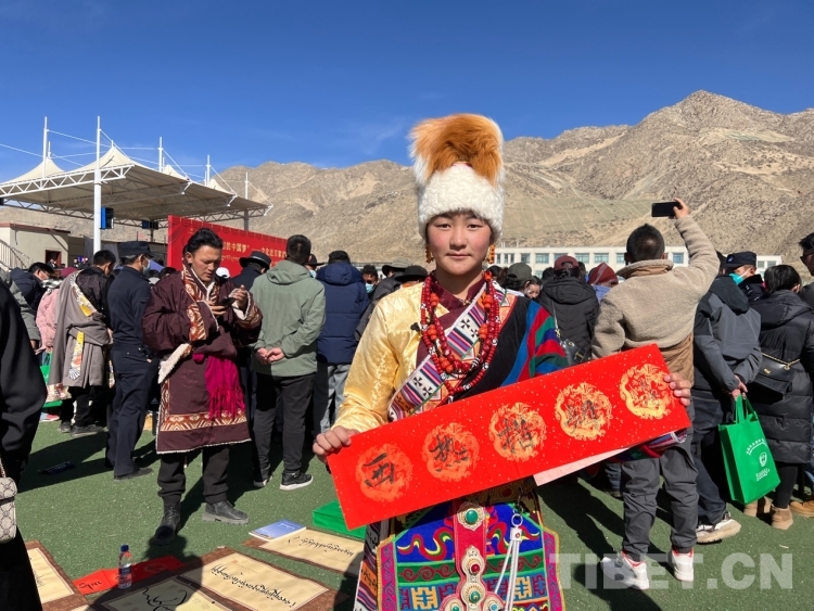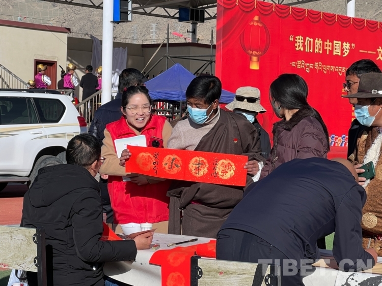 中國(guó)西藏網(wǎng)訊 2月16日,西藏自治區(qū)文聯(lián)主辦的“我們的中國(guó)夢(mèng)”——文化進(jìn)萬家活動(dòng)在極高海拔生態(tài)搬遷安置點(diǎn)開展。在送“書法”現(xiàn)場(chǎng),由西藏書法協(xié)會(huì)和山南市11位書法家為當(dāng)?shù)厝罕娝腿?00多張?jiān)⒁饷篮玫男履曜8:腿罕娖谕男履曜T傅?。活?dòng)現(xiàn)場(chǎng)群眾絡(luò)繹不絕,大家心滿意足地拿著書法家為自己贈(zèng)送的精美“禮品”。一旁書法家們忙碌地為群眾書寫祝詞,另一旁群眾們晾曬著他們得到的書法作品,一時(shí)間現(xiàn)場(chǎng)成了“書法展”,時(shí)不時(shí)地有人前來參觀欣賞。(中國(guó)西藏網(wǎng) 記者/德吉卓瑪)