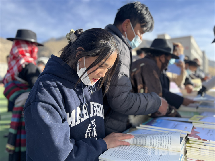 在送“書籍” 現(xiàn)場,《西藏文學》《西藏文藝》《邦錦梅朵》三個編輯部工作人員為現(xiàn)場群眾和當?shù)?span style="text-align: center; background-color: rgb(253,242,234)">干部贈送書籍,當?shù)厝罕姾蛯W生們紛紛前來翻看尋找自己喜歡的書籍,大家人手幾本書。“我平時喜歡閱讀藏文文學作品,這次要了兩本文學相關書籍拿回家閱讀”17歲的益西巴珍說。據(jù)了解,此次活動西藏文聯(lián)向熱愛閱讀的群眾和學生共贈送1500本(冊)文藝書籍和期刊。