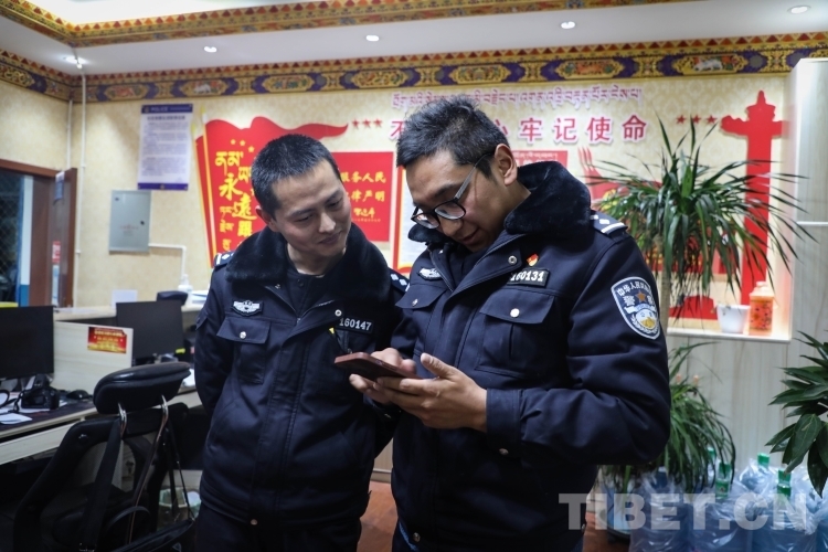 “每天早晨,我要做的第一件事就是和雙聯(lián)戶長(zhǎng)了解轄區(qū)內(nèi)前一天的治安情況,然后開始社區(qū)入戶檢查、商場(chǎng)巡邏?!庇浾吡私獾?,藏歷年期間沖賽康商場(chǎng)商戶人員眾多,巡邏起來費(fèi)時(shí)費(fèi)力,沖賽康結(jié)束營(yíng)業(yè)后,還需要清理清場(chǎng)?!叭绻ぷ鞯教?,我一般就在辦公室住下了?!睂?duì)于這樣忙碌的執(zhí)勤工作,多吉江村早已習(xí)以為常。