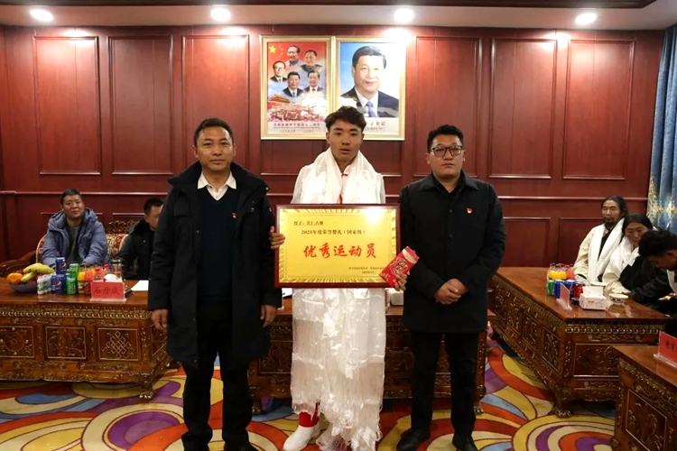 中國(guó)西藏網(wǎng)訊 近日,西藏自治區(qū)那曲市比如縣在夏曲鎮(zhèn)舉行歡迎越野滑雪國(guó)家運(yùn)動(dòng)員次仁占堆榮歸故鄉(xiāng)座談會(huì)。家鄉(xiāng)父老鄉(xiāng)親向次仁占堆回到家鄉(xiāng)表示熱烈歡迎,向其頒授“2023年度榮譽(yù)禮贊(國(guó)家級(jí))優(yōu)秀運(yùn)動(dòng)員”榮譽(yù)牌。