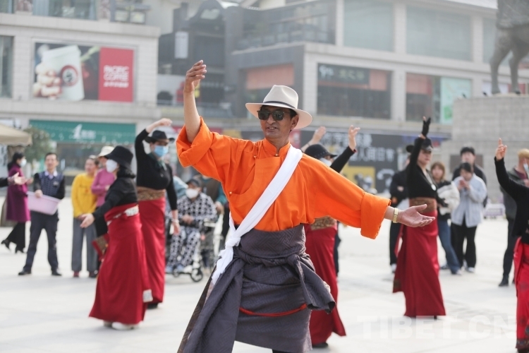 在大唐西市、興慶宮公園等地,沙多等多位藏舞推廣傳承人與西安當(dāng)?shù)劐伹f舞團(tuán)隊(duì)交流展演,現(xiàn)場(chǎng)氣氛熱烈。