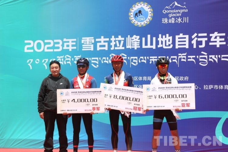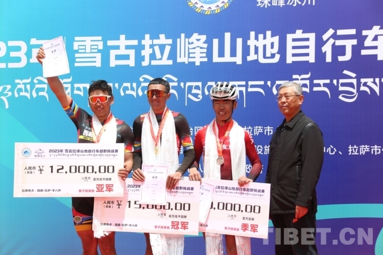 圖為獲得男子精英組冠軍西藏亞車(chē)隊(duì)選手江村羅布、亞軍西藏亞車(chē)隊(duì)扎頓、季軍拉薩朋友車(chē)隊(duì)選手索朗 攝影:德吉卓瑪