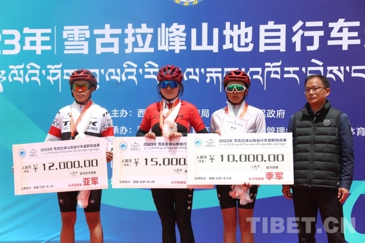 圖為獲得女子精英組比賽冠軍老隊(duì)員車(chē)隊(duì)選手白瑪央吉、亞軍區(qū)體校隊(duì)選手曲美巴措、季軍區(qū)體校隊(duì)選手索朗益西 攝影:德吉卓瑪