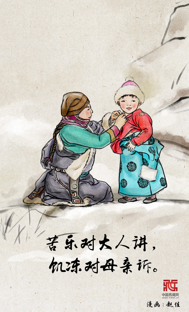 “苦樂(lè)對(duì)大人講,饑凍對(duì)母親訴。”訴說(shuō)著母親是孩子最溫暖的港灣。