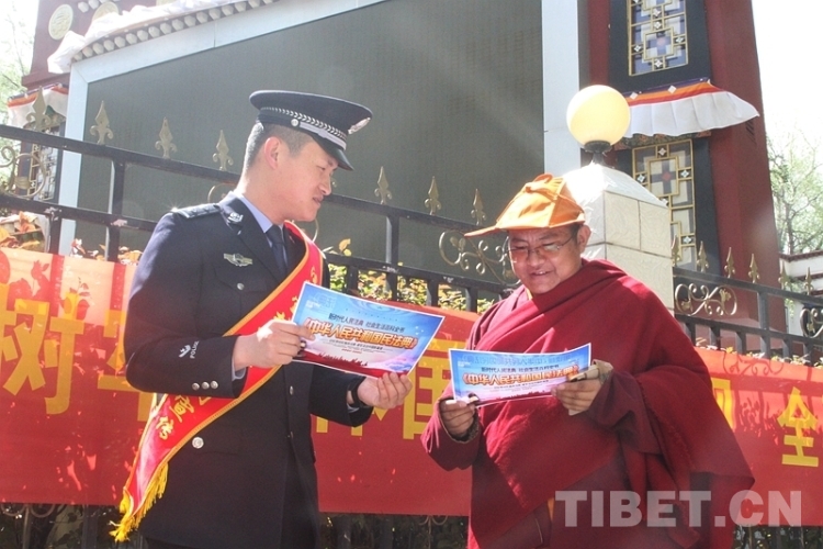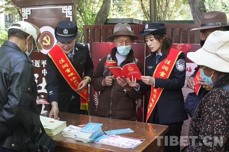 圖為西藏邊檢總站執(zhí)法調(diào)查支隊組織民警開展“2023民法典進(jìn)公園”主題宣傳活動 攝影:仁青旺堆