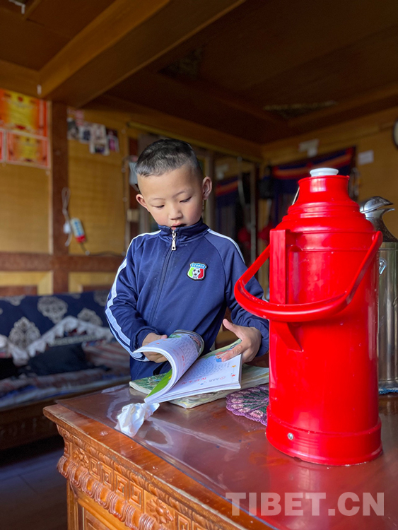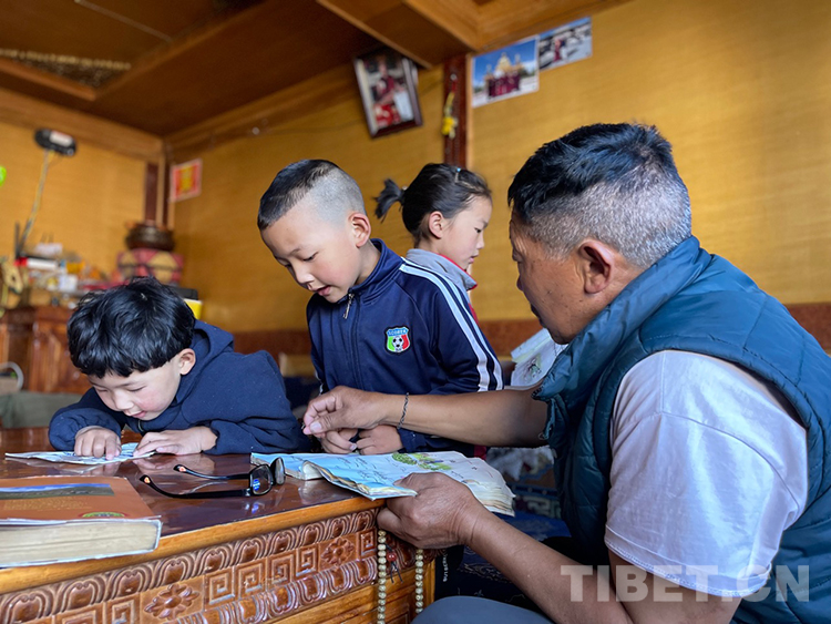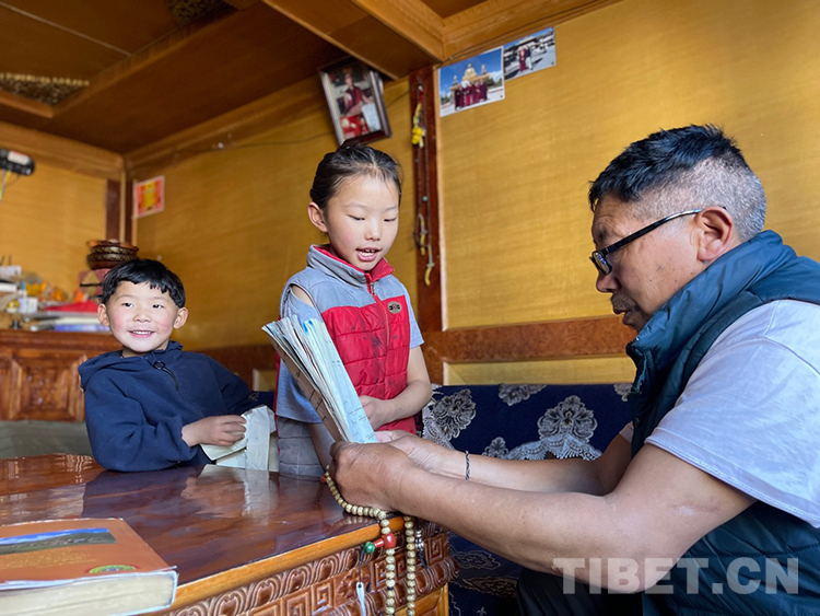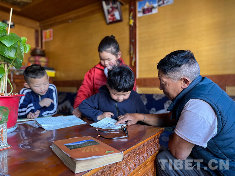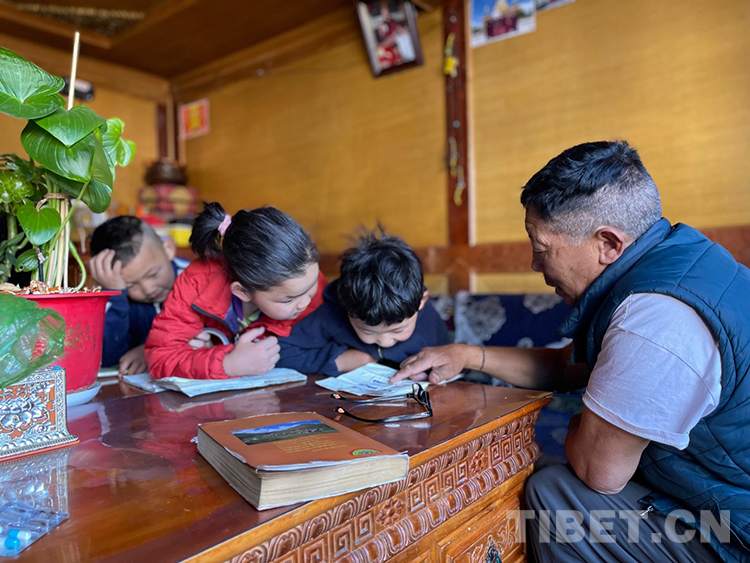 阿噶大爺自己粗通藏文,能督促和檢查藏文作業(yè),孩子們則非常享受爺爺驗(yàn)收他們的學(xué)習(xí)成果,每次都爭(zhēng)先恐后地請(qǐng)爺爺聽自己的發(fā)音和背誦是否準(zhǔn)確。平時(shí)老師還會(huì)安排上網(wǎng)課,因此不會(huì)耽誤他們的學(xué)業(yè)。