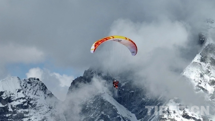 中國西藏網(wǎng)訊 5月18日,中國滑翔傘飛行員木子(李生濤)成功從珠穆朗瑪峰海拔8000米處用無動力單人滑翔傘起飛,經(jīng)過20多分鐘的飛行,安全降落在海拔5400米的珠峰南坳大本營附近預定區(qū)域。