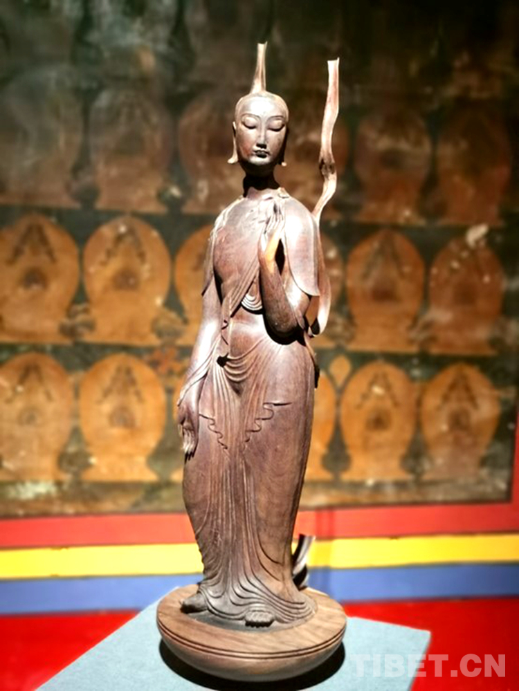 圖為展覽中圍繞西藏歷史與傳統(tǒng)創(chuàng)作的雕塑作品 攝影:王淑