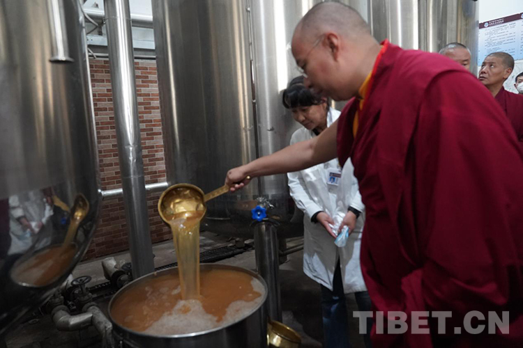 當(dāng)看到傳統(tǒng)醫(yī)學(xué)傳承及保護(hù)、整理和研究藏醫(yī)藥古文獻(xiàn)取得較好成果,班禪流露出滿意的笑容。對(duì)當(dāng)班的年輕醫(yī)護(hù)人員,班禪詢問了他們生話、學(xué)習(xí)、工作等情況,并鼓勵(lì)他們一定要以慈悲的心靈對(duì)待患者,在病房里,對(duì)患者們送去溫暖的關(guān)懷和撫慰、并給他們摸頂賜福。當(dāng)?shù)弥蒯t(yī)藥科研工作正走向健康軌道,一些藏藥專著在國(guó)內(nèi)外產(chǎn)生較大影響時(shí),班禪表示十分欣慰。