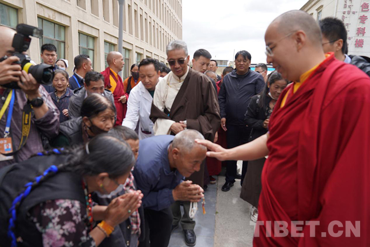 圖為班禪對(duì)醫(yī)院群眾進(jìn)行摸頂賜福 攝影:王淑