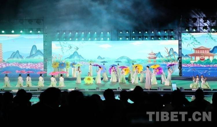 當(dāng)晚開幕式文藝演出共分為序《雪頓新韻》、上篇《相約雪頓》、下篇《心約拉薩》和尾聲《百年雪頓》四部分,整場(chǎng)文藝演出融合歌曲、舞蹈、藏戲、京劇、昆曲、街舞等元素,并以半實(shí)景的舞臺(tái)藝術(shù)形式上演《百年雪頓》等節(jié)目,線上線下呈現(xiàn)了一臺(tái)傳統(tǒng)與現(xiàn)代交相輝映、傳承與創(chuàng)新和諧相融、歷史與未來一脈相承的文藝盛宴。
